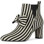 uxcell Allegra K ストライプ柄 アンクルブーツ ポインテッドトゥ ブロックヒール サイドジッパー レディース ブラック 24.0 cm
