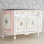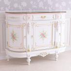 サイドボード おしゃれ キャビネット 白 ホワイト 扉付き 収納家具 ロココ調 姫系 ROCOCOアントワネット グランデサイドボード ガラス天板付き
