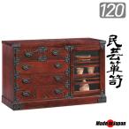 サイドチェスト タンス 120 完成品 飾り棚 おしゃれ 開き戸 引き出し 民芸箪笥
