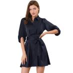 Allegra K シャツワンピース ドレス Aラインドレス プリーツウエスト エレガント パフスリーブ レディース