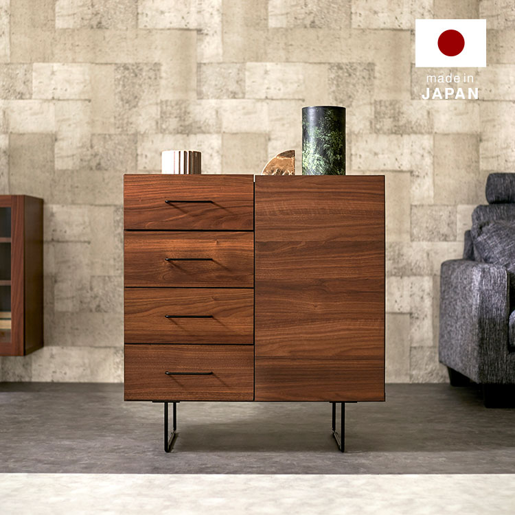 チェスト 4段チェスト 無垢 ウォールナット無垢 おしゃれ 電話台 花台 北欧 木製チェスト 小物収納 サイドチェスト 収納家具 コンパクト 省スペース ファックス台 完成品 小物収納 高さ70【送料無料】40チェスト(ウォールナット)