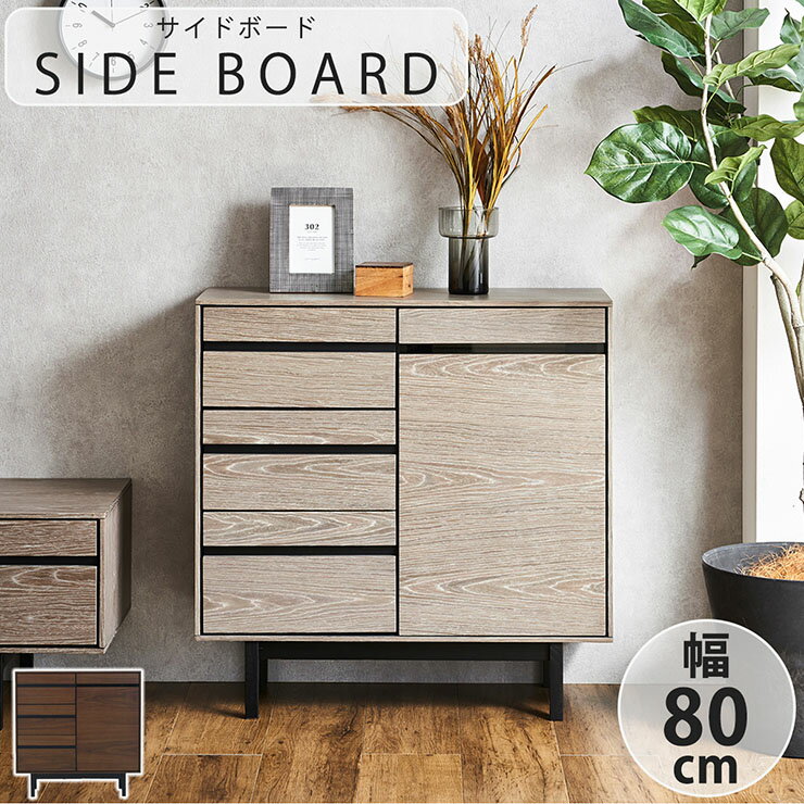 【5%OFFクーポン配布中】サイドボード 幅80cm 2色対応 サイドチェスト キャビネット 木製ラック 収納ラック 収納棚 リビング収納 リビングボード 引き出し収納 扉収納 可動棚 木製 チェスト ラック 小物収納 おしゃれ