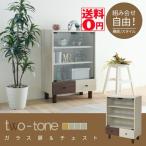 組み合わせ自由 木目調のかわいいアクセント 2tone Box シリーズ ガラスキャビネット (幅60cm) FMB-0001