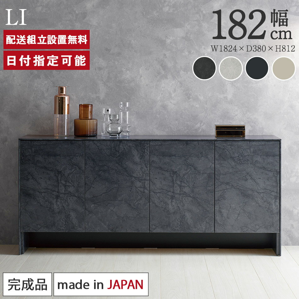 パモウナ キャビネット 幅180cm 開き扉 LI 石目柄 ストーン調 ハイマット ブラック ベージュ 完成品 収納 国産 おしゃれ 高級感 サイドチェスト リビングボード ストレージ ソフトクローズ 可動棚 コードストック 引出 引き出し 送料無料 納品日指定可能