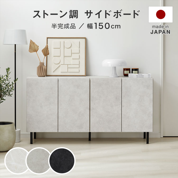 [楽天スーパーSALE! 12/4 20:00 - 12/11 1:59] 収納棚 チェスト キャビネット サイドボード リビングボード リビング 棚 ローボード フリーボード サイドチェスト タンス 150cm ストーン風 石柄 スチール脚 国産 日本製 開梱設置無料 おしゃれ 半完成品