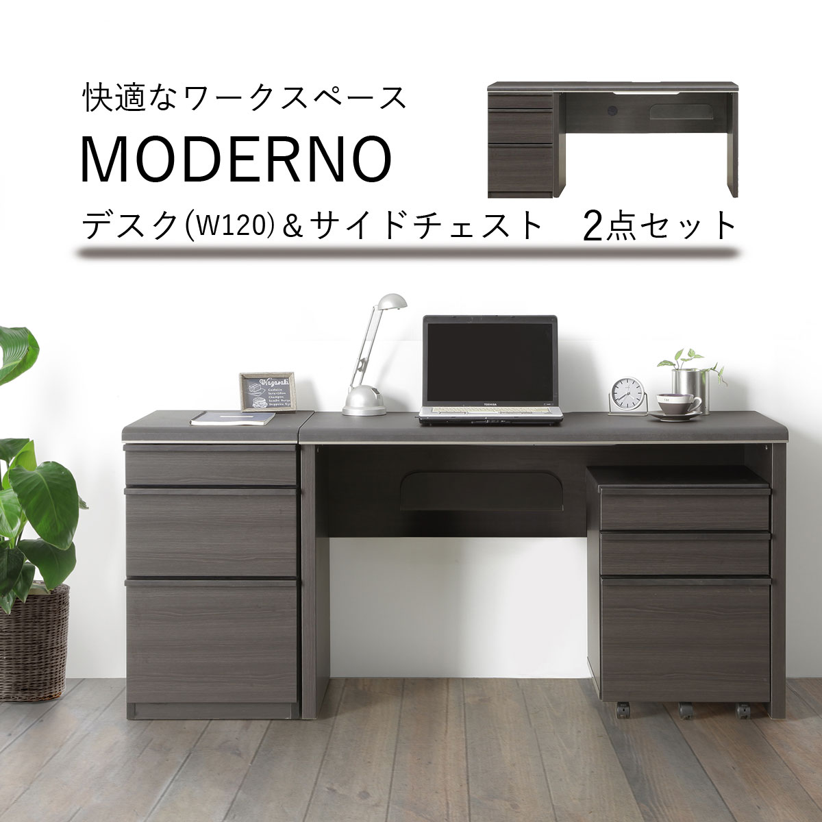 デスク 幅120cm サイドチェスト 2点セット 机 収納 ワーキング ワークスペース テレワーク 在宅 セラミック柄 MODERNO モデルノ