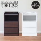 ナイトテーブル 幅40cm 2段 スリム サイドテーブル 引き出し テーブル コンセント付 ベッドサイドテーブル ブラウン ホワイト