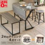 (12月中旬入荷)天板開閉で使い方いろいろ! 2WAY バタフライダイニング 4点セット (テーブル+スツール2脚+ベンチ) UNI-0002SET