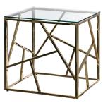 【並行輸入品】モダンスクエアエンドサイドテーブル、強化ガラストップメタルコーヒーテーブル(ゴールド) Modern Square End Sid