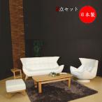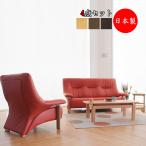 ソファ4点セット センターテーブル サイドテーブル ソファー 1P 3P 革張 木脚 AS-0155
