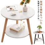 サイドテーブル 円形丸テーブル 北欧 ナイトテーブル 棚付 収納 ベッドサイドテーブル ソファーサイドテーブル 食卓 ラウンドテーブル リビング 寝室
