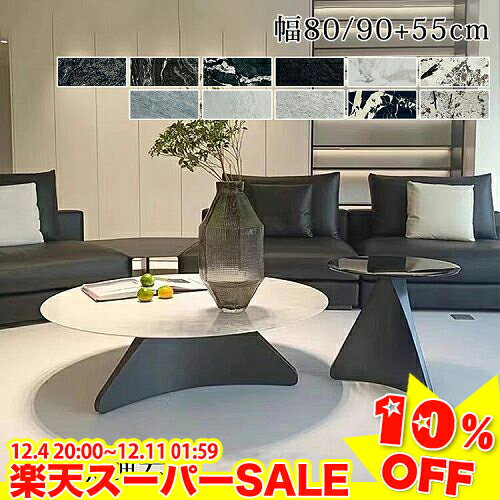 \楽天スーパーSALE★10%OFF/センターテーブル 大理石 丸 ローテーブル 円型 おしゃれ コーヒーテーブル サイドテーブル 座卓 リビングテーブル 北欧 丸テーブル 白 黒 ツインテーブル 天然大理石 高級感 モダン 直径55cm 80 90cm 2個セット 新生活 応接
