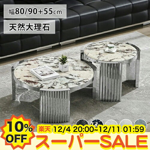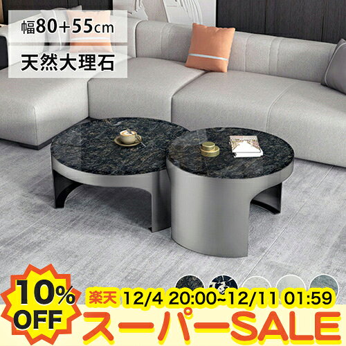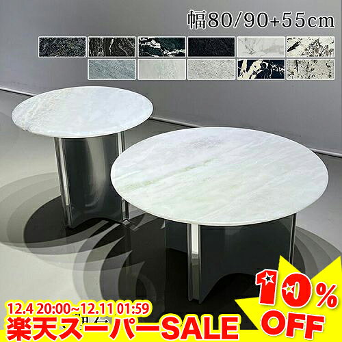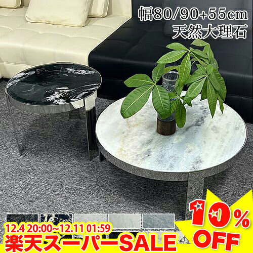 【10%OFF★楽天スーパーSALE】センターテーブル 2個セット 天然石大理石 丸テーブル 小さめ 円形 丸い 組合せ リビングテーブル サイドテーブル ホワイト 白 ブラック 黒 直径80cm 90cm 大理石テーブル 直径55cm ネストテーブル リビング 円形 来客用 一人暮らし 天然石