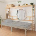 山善(YAMAZEN) ヘッドボード ベッドサイド ラック 収納 天然木 シングル (ハンガーバー/上棚付き/全体耐荷重30kg) ベッド上 収