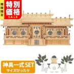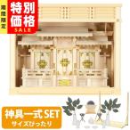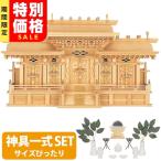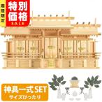 【特価】五社神棚 神棚 モダン 大型高級神棚 マス組付五社・大 ひのき + 神具セット set4