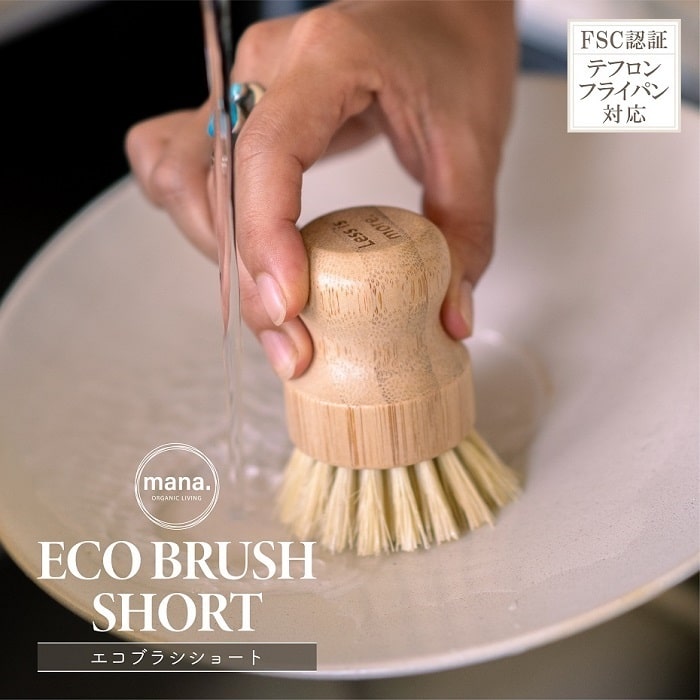 万能ブラシ mana. エコブラシ ショート FSC認証取得 多用途 天然素材 テフロンフライパン使用可 食器洗い お掃除 キッチン バスルーム オーガニックバンブー エシカル 脱プラスチック サスティナブル SDGs