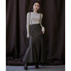 マルチサイズ スカート サスペンダー付パネル切替ナローデニムスカート