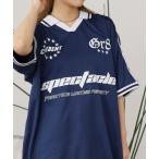 トレーナー スウェット 「ブルーロック」別注 グラフィック刺繍 ドロスト パイピングライン サッカーシャツ Vネック スウェット レディース メンズ