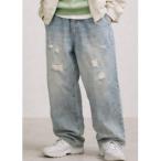 ジーンズ ワイドバギーダメージデニムパンツ メンズ レディース