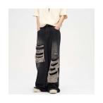 ジーンズ ワイドシルエット デニムダメージパンツ メンズ レディース