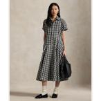 ポロ ラルフ ローレン POLO RALPH LAUREN コットン シアサッカー パネルド シャツドレス (001ブラック)