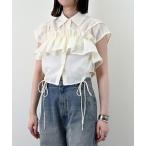 ブラウス シャツ 針抜きサッカーストライプフリルビスチェセットシャツ レディース