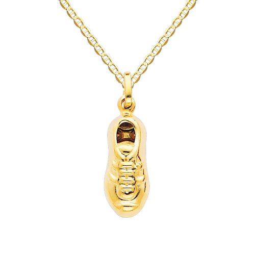 【中古】【未使用・未開封品】14Kイエローゴールド サッカーシューズ エナメルペンダント 1.5mmフラットマリナーチェーンネックレス