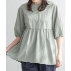 ブラウス シャツ 綿混バックボタンハイネックサッカーブラウス レディース