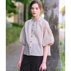 ブラウス シャツ 「洗える/前開き」ボリュームスリーブストライプブラウス レディース