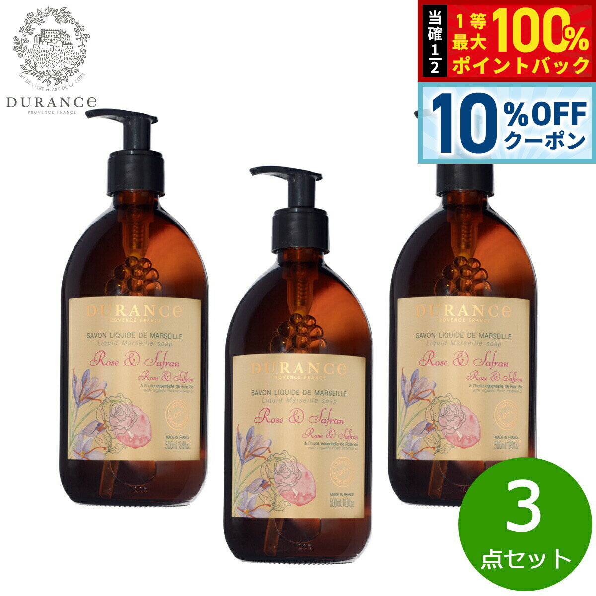 【10%OFFクーポンは2日09:59まで】DURANCE デュランス ザ エッセンシャルズ マルセイユリキッドソープ ローズ&サフラン 500ml×3点【送料無料】