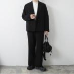 INTERIM インテリム ウール クレープ サブレ ベール デッドストック ファブリック ワイドドレス イージーパンツ ブラック