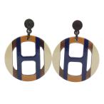 (新品・未使用品)HERMES エルメス Hエキップ バッファローホーン ラッカーウッド サブレマリン ベージュ ブルー ブラウン ピアス シルバー金具 箱付