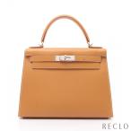 エルメス HERMES ケリー28 ナチュラルサブレ ハンドバッグ ヴォーシャモニー イエローブラウン シルバー金具 2WAY □E刻印 レディース 中古