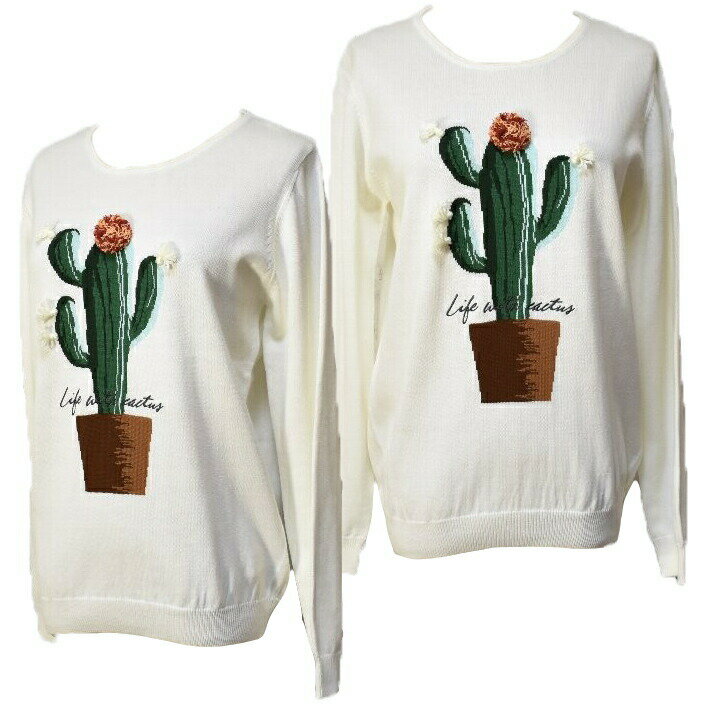 \10月の日〜火曜日30%OFFクーポン♪定価から50%OFF/サマーセーター 春ニット 長袖セーター 331234 フリーサイズ レディース カジュアル グリーンデイル ガーネット 【中】GREENDALE GARNET ホワイト サボテン カクタス 半額