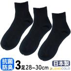 【3足組】28~30cm 日本製 抗菌防臭サポーターショートソックス ハーフ丈 ブラック ビジネス スクール カジュアルに最適【1点までメール便対応】