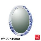 鏡 壁掛けミラー 有田焼 染付祥瑞 洗面鏡 楕円 W490×H800 ウォールミラー 和風 磁器 日本製 洗面台 洗面所 姿見 姿見鏡 壁掛け 壁付け 縦長 おしゃれ