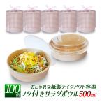 紙製食品容器 丸型 サラダボウル 500ml 100個 透明蓋付 持ち帰り容器 フタ付き 使い捨て容器 クラフトボウル お総菜容器 電子レンジ可