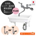 LIXIL 実験シンク 壁付混合栓 5点セット W600 壁掛け スロップシンク 洗面台 おしゃれ 排水金具 壁掛金具付き リクシル