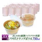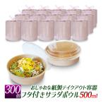 紙製食品容器 丸型 サラダボウル 500ml 300個 透明蓋付 持ち帰り容器 フタ付き 使い捨て容器 クラフトボウル お総菜容器 電子レンジ可