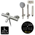 バス水栓 fusion ステンレス サーモスタットシャワー壁付混合栓 シャワーヘッド ホース フック 4点セット (ロングクランク) SSB285-LC-SET 爆買