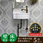 小型 手洗器 セット 壁給水 床排水 おしゃれ 蛇口 レトロ トイレ 壁掛け 洗面ボウル シンク アンティーク水栓 サブリナネオ ポリッシュドニッケル 銀色