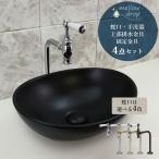 洗面ボウル 水栓セット おしゃれ 手洗い器 4点セット 造作洗面台 アンティーク 単水栓 排水栓 メロウ・ドロップ オーバル 黒 コールブラック AHISET182-B