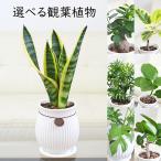 観葉植物 ガジュマル サンスベリア ヒメモンステラ フィカス ゴム 陶器鉢 たて線 縦縞 つぼ タグ付き 4号 ホワイト 白 種類 選べる おしゃれ 小さい 棚 本物