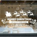 ウォールステッカー サンタクロース ソリとトナカイ シルエット風 装飾シール クリスマス 英語 白色 窓に 送料無料