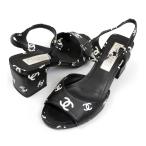 CHANEL シャネル ココマーク ラムスキン ウェッジソール サンダル レディース ブラック