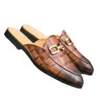 夏 ビジネススリッパ メンズ 革 ビットタイプ クロコダイル柄 ワニ柄 大きいサイズ かかとなし靴 ビジネスシューズ かかとなし 通気
