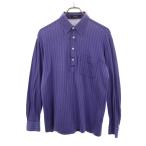 YVES SAINT LAURENT イヴサンローラン 90s オールド ストライプ柄 長袖 ポロシャツ パープル メンズ 古着 中古