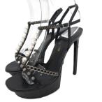 サンローラン パリ SAINT LAURENT PARIS ストラップサンダル ミュール ハイヒール ビジュー チェーン フェイクパール 35 22cm 黒