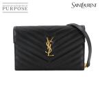 新品同様 サンローラン SAINT LAURENT カサンドラ エンベロープ チェーン ウォレット 長財布 レザー ブラック 742920 90296842