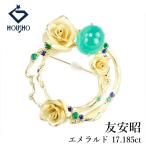 友安昭 エメラルド ブローチ サファイア K18YG 作家 デザイナー バラ ローズ 花 フラワー 植物 サークル リース 送料無料 中古 宝正 904235
